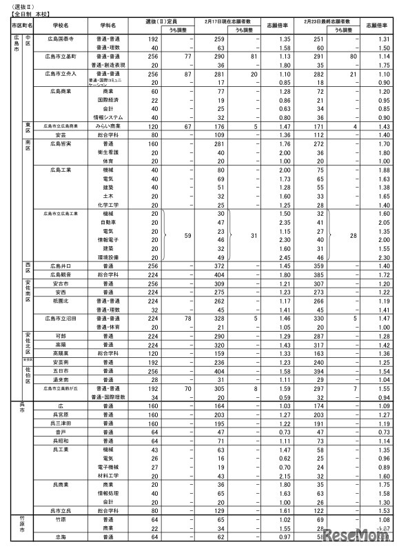平成23年度広島県公立高等学校選抜(II)等の志願状況