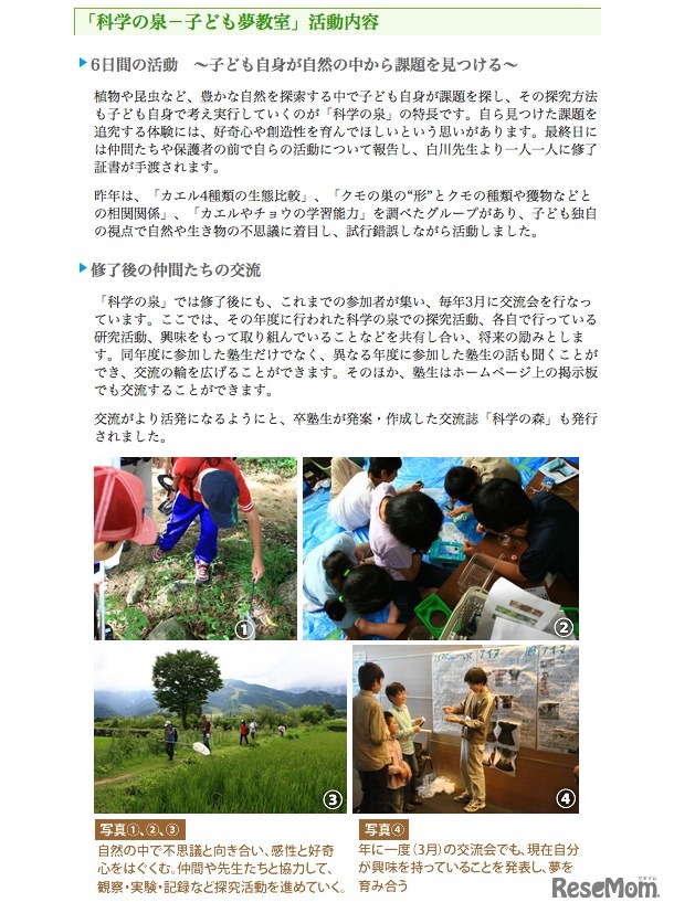 ソニー教育財団では、今年8月7日から6日間に渡って清里高原で開催する第7回「科学の泉-子ども夢教室」の参加者募集している。小学5年生から中学2年生までが対象。
