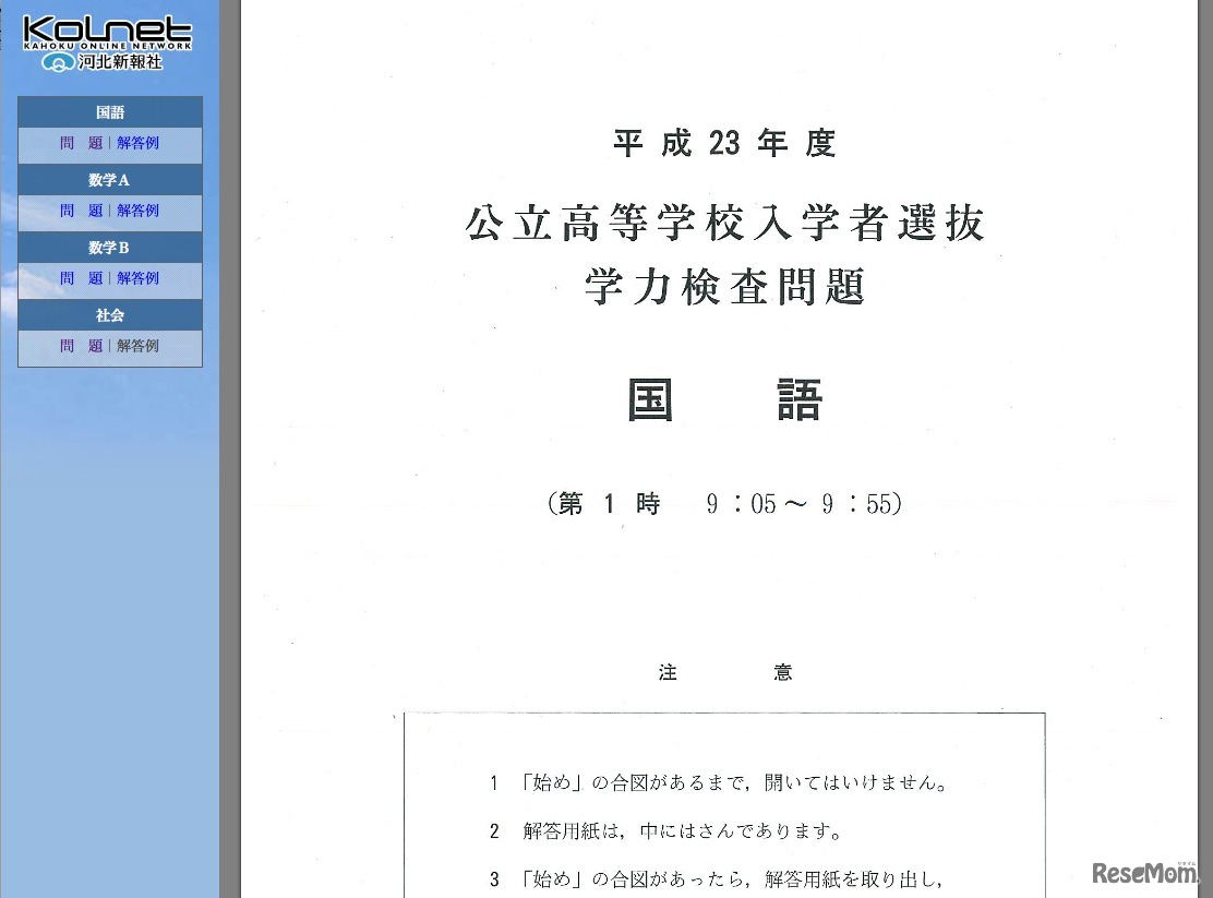 宮城県では本日3月9日、公立高校の入学者選抜・学力検査が行われている。河北新報社では早くも本日の入試問題の解答速報の公開を開始した。