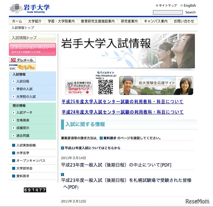 東北地方太平洋沖地震の影響で国公立大学の後期日程の試験中止を発表する大学が被災地周辺をはじめ関東地方にも相次いでいる。