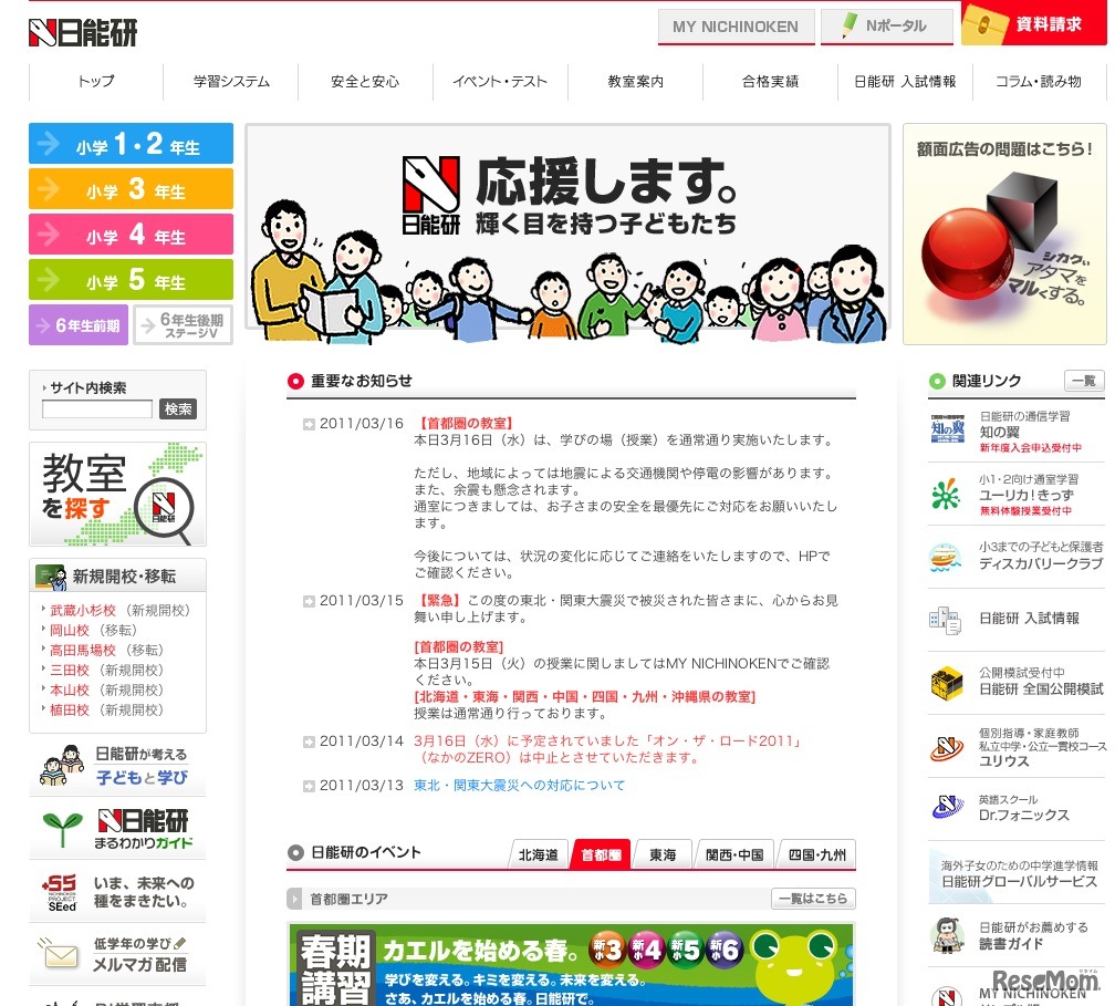 日能研 重要なお知らせ