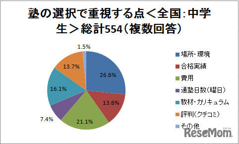 塾の選択で重視する点<全国:中学生>総計554(複数回答)
