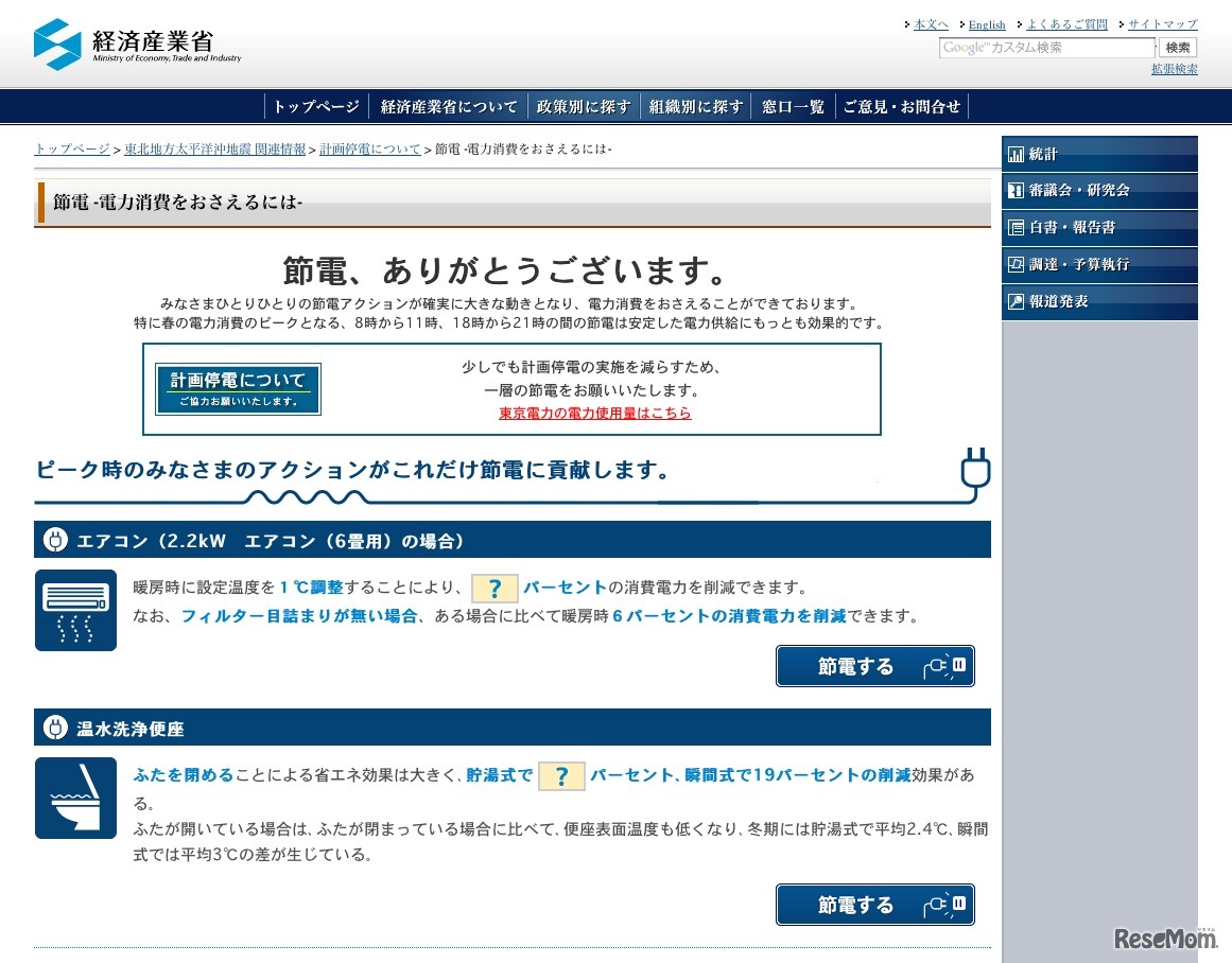 経済産業省は、同省のサイトで「節電・電力消費をおさえるには」と題したページで省エネの情報を公開している。