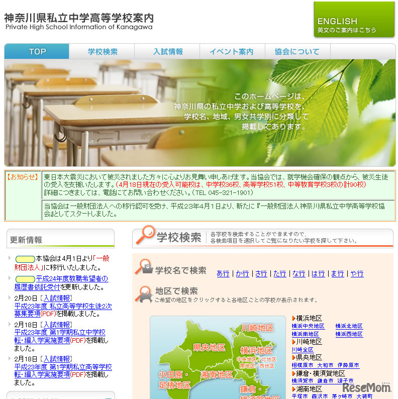 東京私立中学高等学校協会は、東日本大震災で被災された中学校・高等学校の生徒たちに安心した学びの場を提供することを目的に、被災生徒の受入を決定した。