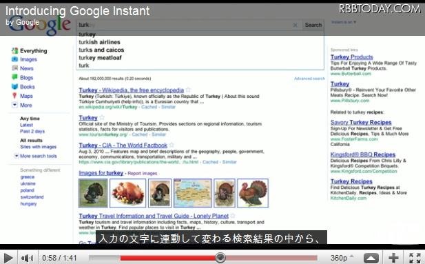 Googleインスタント検索のデモ動画 Googleインスタント検索のデモ動画