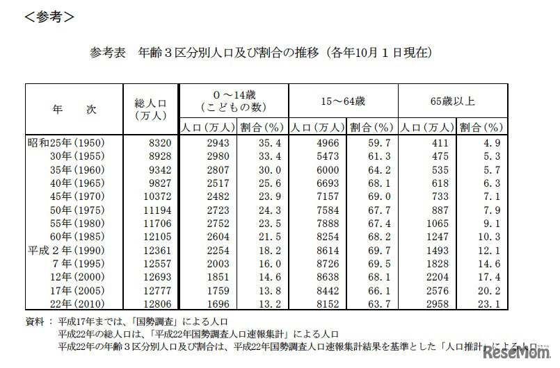 総務省は5月2日、こどもの日にちなんで平成23年4月1日現在における15歳未満のこどもの数を推計し公表した。