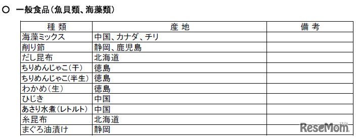 横浜市学校給食会は5月10日、学校給食の使用物資に関する産地の問合わせが多くなっていることから、ホームページにて「給食用物資の産地(5月使用予定分)」を公表した。