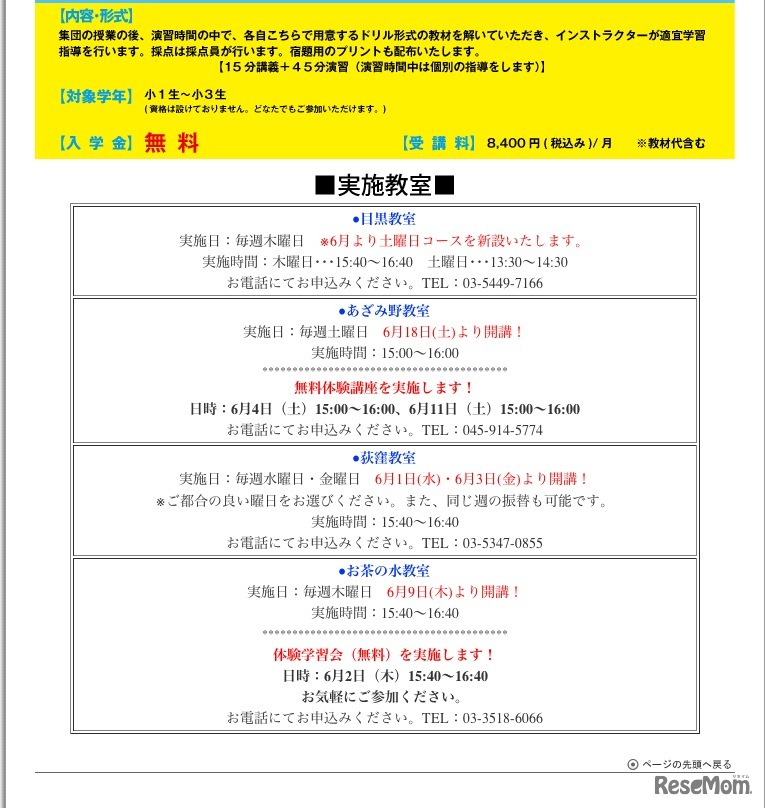 希学園では、小学1年生から小学3年生を対象にした「計算塾」を6月より首都圏の4教室において開講する。あざみ野教室、お茶の水教室では無料体験講座を実施。