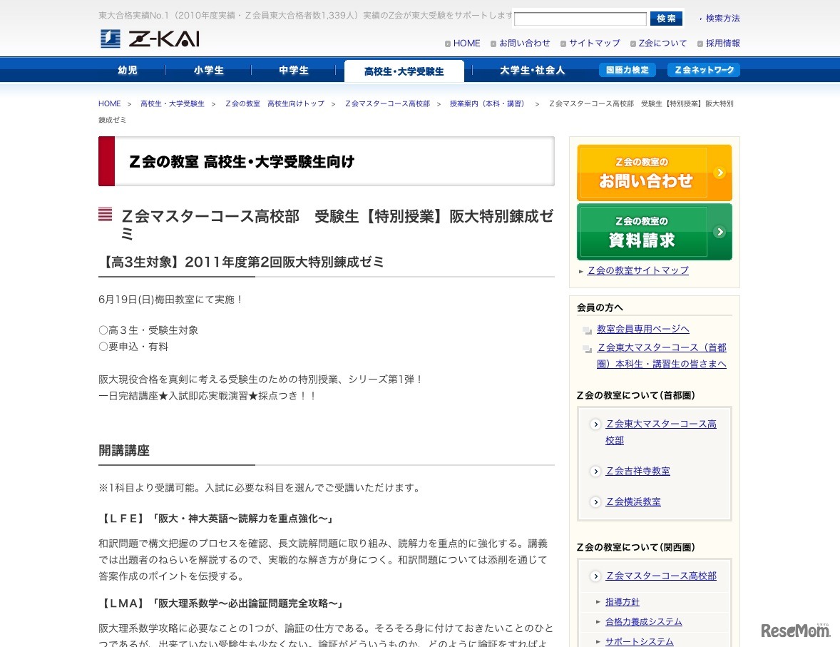 Z会の関西における大学受験教室事業を行っている「Z会マスターコース高校部」は6月19日、「京大・阪大・神大特別錬成ゼミ」シリーズ第2弾を実施する。
