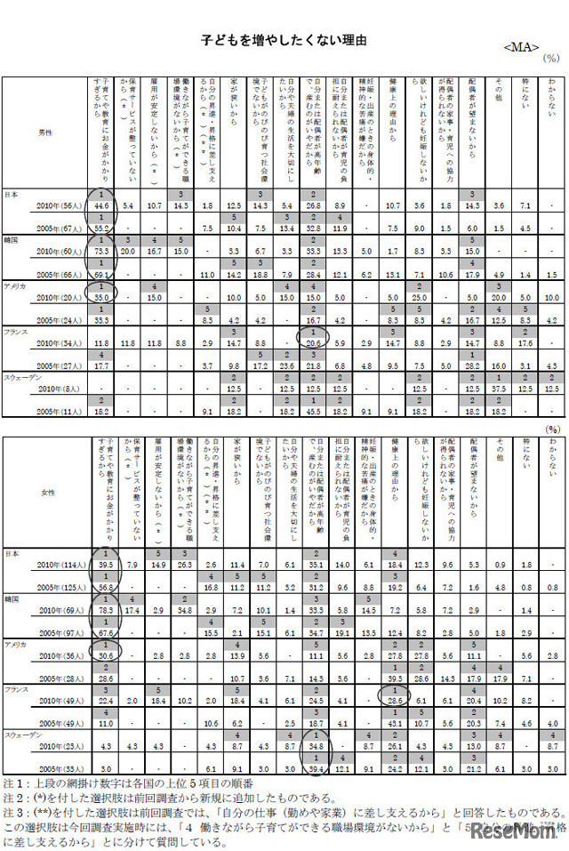 内閣府は5月19日、少子化社会に関する国際意識調査報告書を公表した。内閣府では本調査を2005年にも実施しており、各国比較、経年比較を行っている。