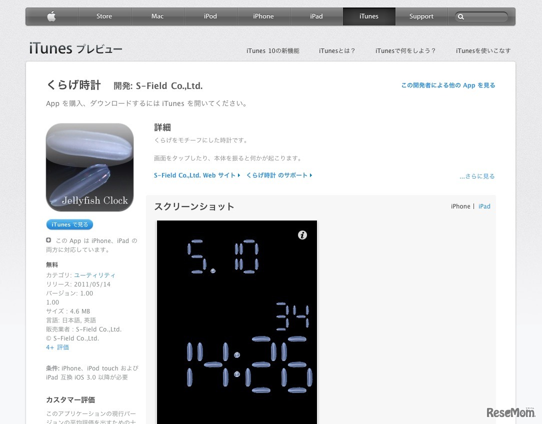 エス・フィールドは、クラゲをモチーフにした無料iPhone&iPad用アプリ「くらげ時計」をApp Storeにて公開した。