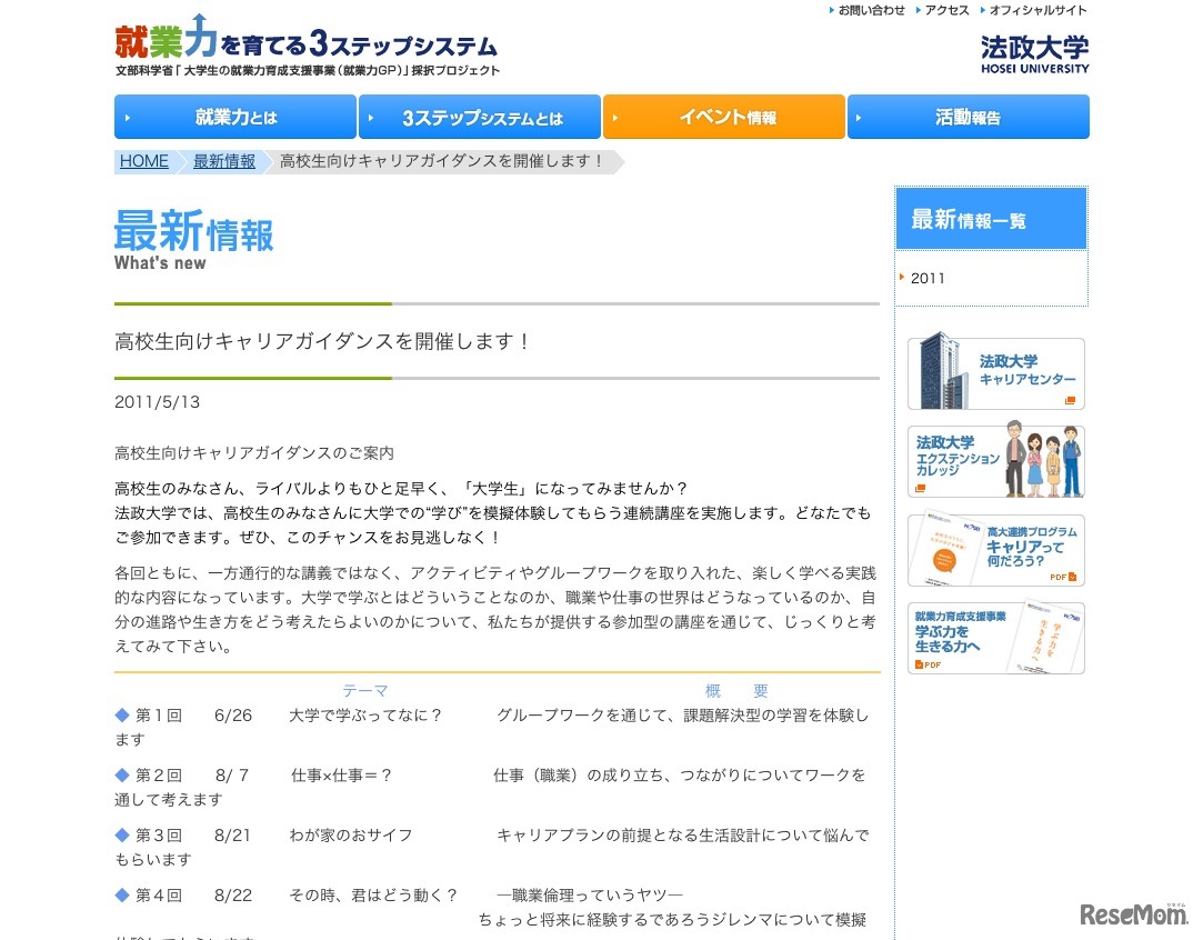 法政大学では、高校生を対象に大学での学びを擬似体験してもらうキャリアガイダンスを実施する。全4回の連続講座で、単独の回のみの受講もできる。