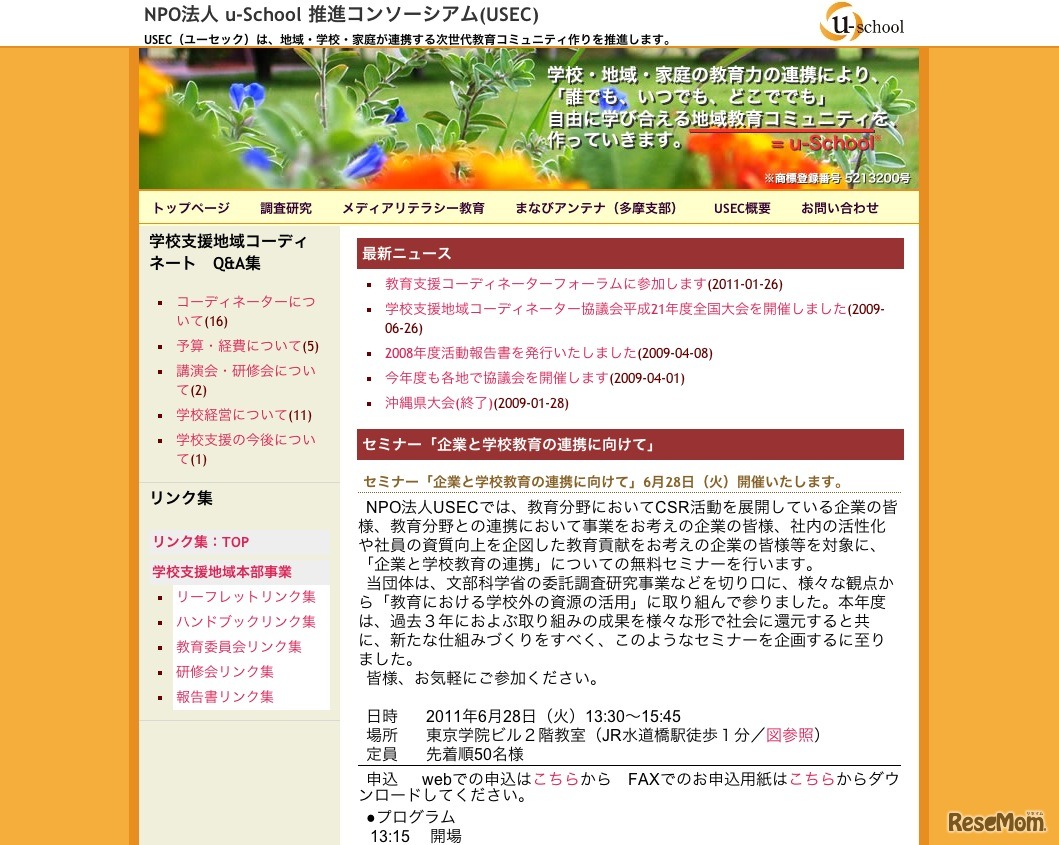 NPO法人USECは、「企業と学校教育の連携に向けて」セミナーを6月28日に開催する。参加は無料、定員は先着50名。