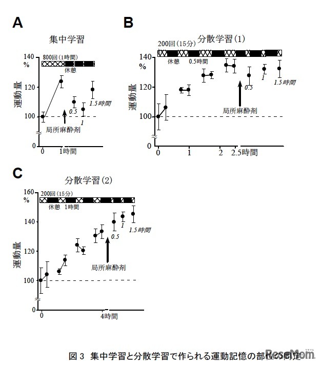 集中学習と分散学習で作られる運動記憶の部位の同定