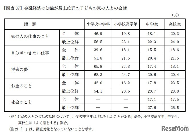 金融経済の知識が最上位群の子どもの家の人との会話