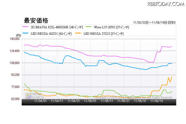 「『液晶テレビ』37~40型モデルの最安価格の推移」(「価格.comトレンドサーチ」調べ) 「『液晶テレビ』37~40型モデルの最安価格の推移」(「価格.comトレンドサーチ」調べ)