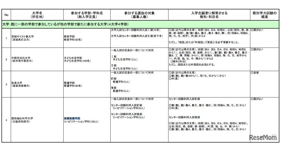 大学入試センターは6月24日、平成24年度大学入学者選抜から大学入試センター試験に新たに参加する大学などについての発表を行った。