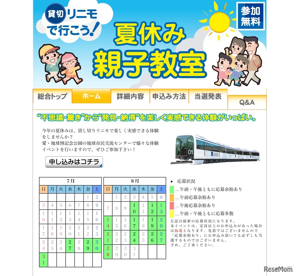 愛知県は6月24日、「探していたのはこの夏休み!リニモ沿線イベント祭り!! 〜親子で作ろう、忘れられない夏の思い出〜」の開催について発表した。