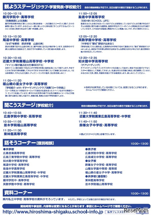 広島県私立中高進路相談会「2011年度私学フェスタ」が7月18日、福山にて開催される。参加予定校は約40校。
