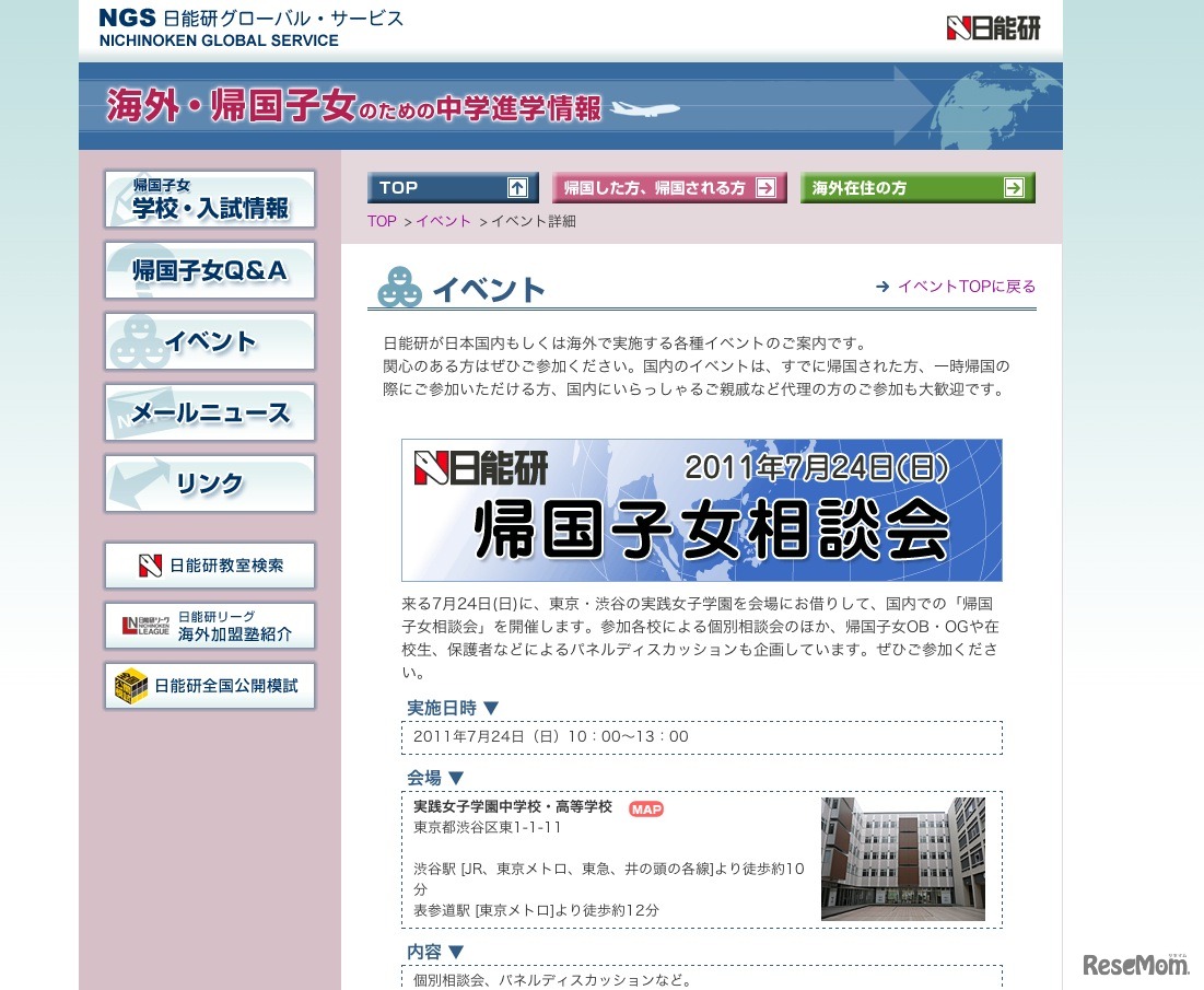 日能研は7月24日、東京・渋谷の実践女子学園において「帰国子女相談会」を開催する。
