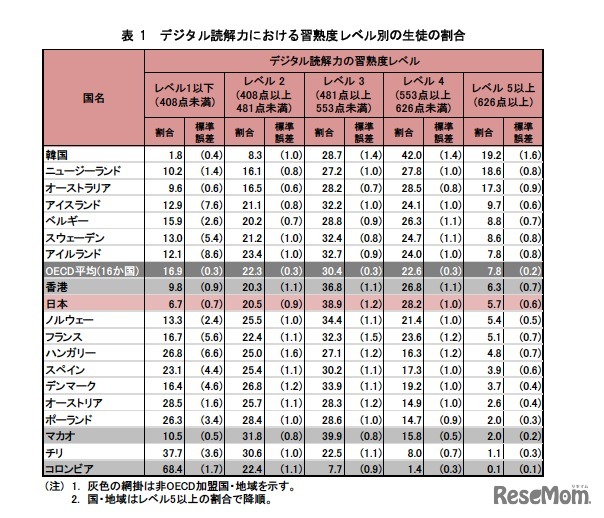 国立教育政策研究所では、OECD生徒の学習到達度調査(PISA2009)「デジタル読解力調査のポイント」をホームページ上で公開している。