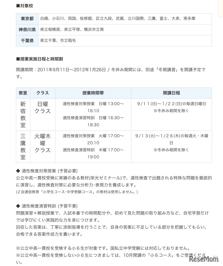 Z会の教室事業を行っている「Z会進学教室」は7月27日、公立中高一貫校の適性検査対策の講座の新規開講について発表した。