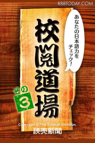 読売新聞は1日、iPhoneアプリ『校閲道場3』の発売を開始した。『校閲道場』シリーズは、読売新聞社のベテラン校閲記者が、正しい漢字表記や日本語の使い方、言葉の意味など50問を出題。