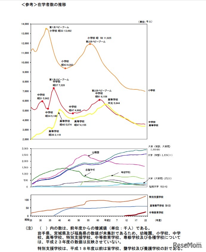 文部科学省は8月4日、「平成23年度学校基本調査速報」をホームページで公表した。確定値は平成24年2月に公表の予定。