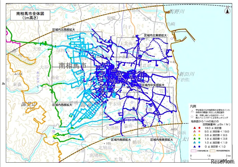 学校・通学路などを検証…緊急時避難準備区域「放射線分布マップ」 2枚目の写真・画像