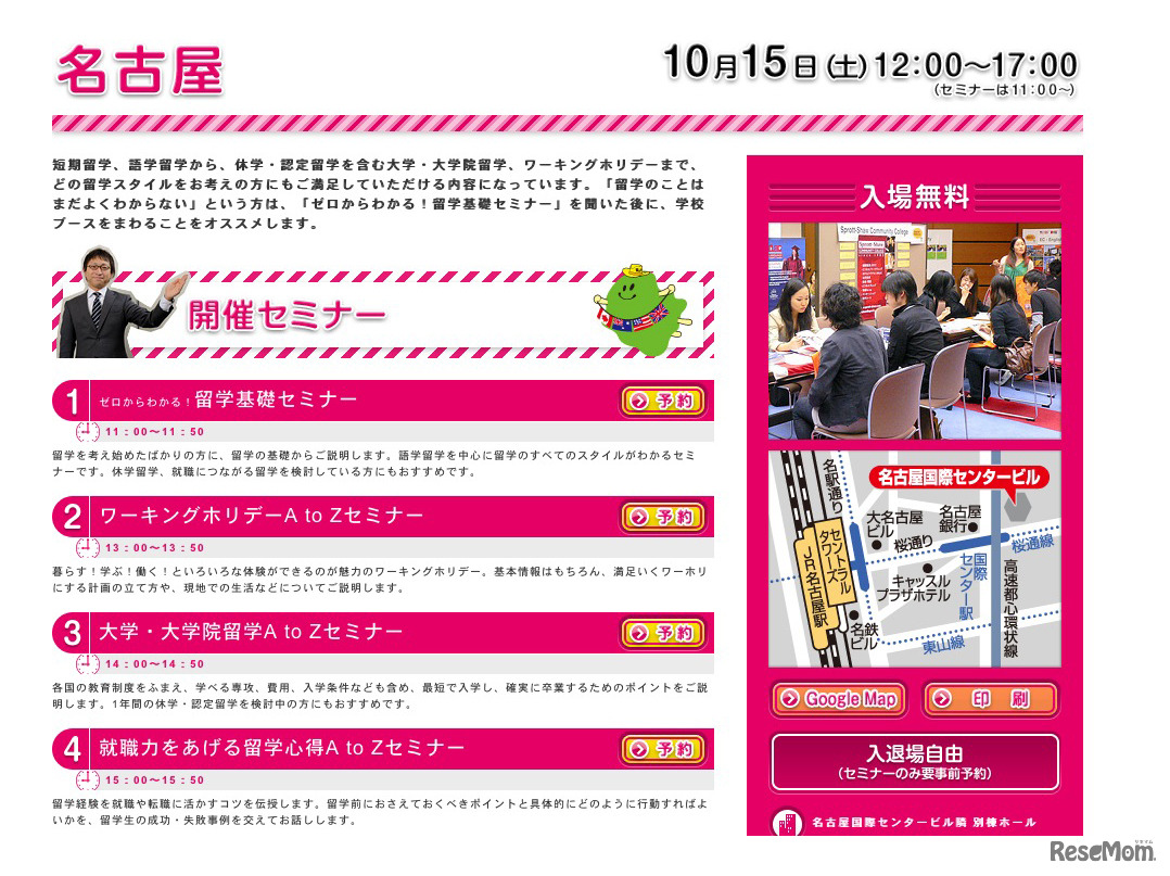 留学ジャーナルでは、10月に全国4都市で開催する「ワールド留学フェア2011 Fall」のセミナー参加予約を受け付けている。
