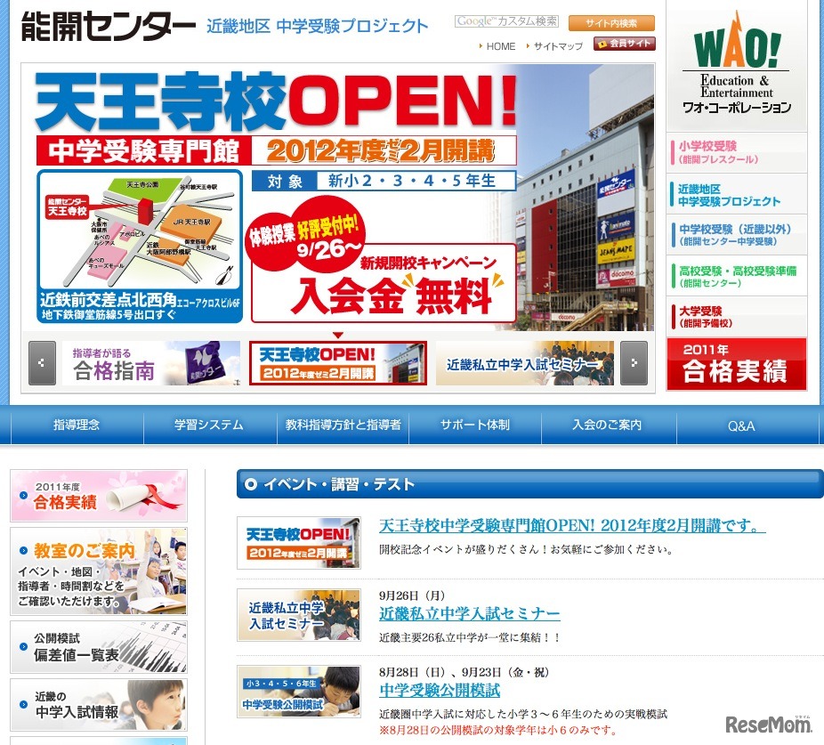 ワオ・コーポレーションは8月24日、同社が運営する学習塾・能開センターにおいて、大阪・天王寺に新校舎を構え、来年2月より新規開校すると発表した。