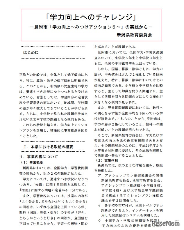 「学力向上へのチャレンジ」-見附市「学力向上~みつけアクション5~」の実践から/新潟県教育委員会