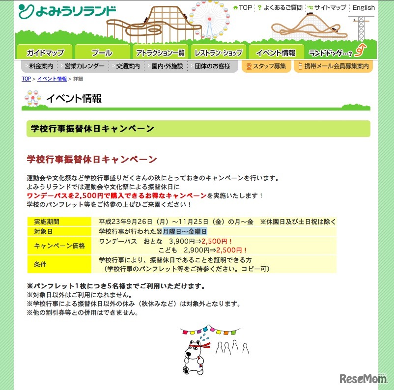 運動会や文化祭など、秋は学校行事の多い季節。秋の振替休日におすすめのサービスを実施しているアミューズメント施設があることはご存知だろうか?