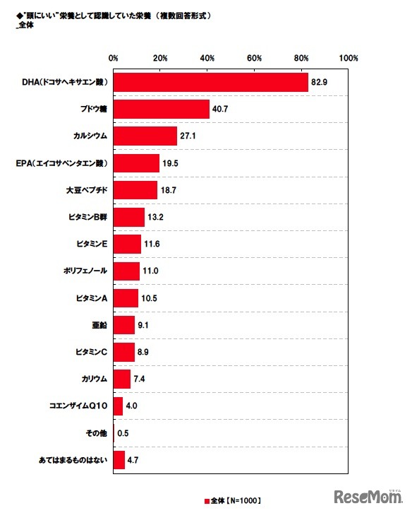 "頭にいい”栄養として認識していた栄養(複数回答形式)全体
