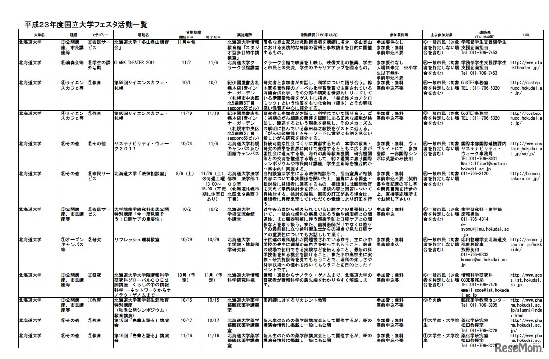 国立大学協会では、10月および11月の2ヶ月を「国立大学フェスタ」とし、期間中、各国立大学等がシンポジウムやオープンキャンパス、公開講座などさまざまな活動を実施する。