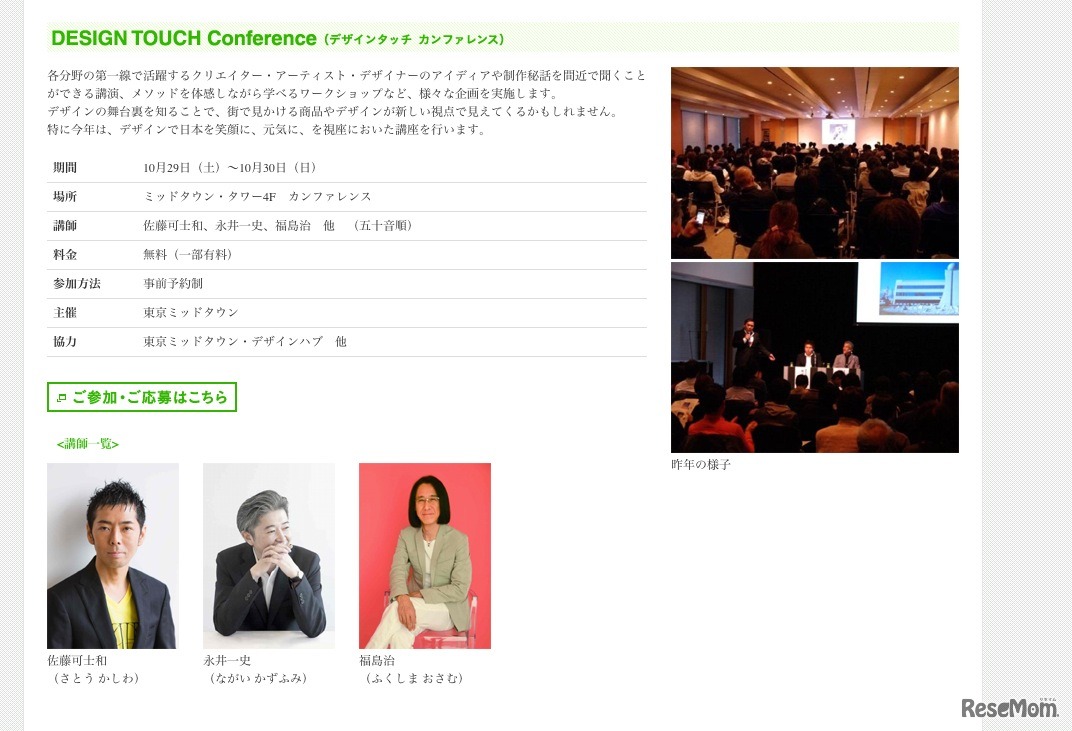 東京ミッドタウンでは、「Tokyo Midtown DESIGN TOUCH」を10月28日から11月6日に開催する。