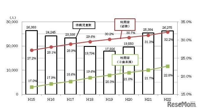 厚生労働省は10月4日、全国の保育所関連の状況をとりまとめてホームページ上で公表した。