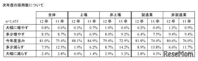 マイナビは10月5日、国内企業を対象に実施した「2012年卒マイナビ企業新卒内定状況調査」の結果を公表した。