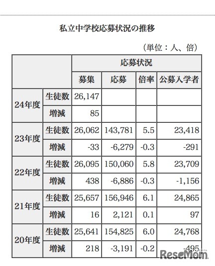 東京都は10月5日、平成24年度の都内私立中学校入学者選抜実施要項について取りまとめ、ホームページ上で公開した。