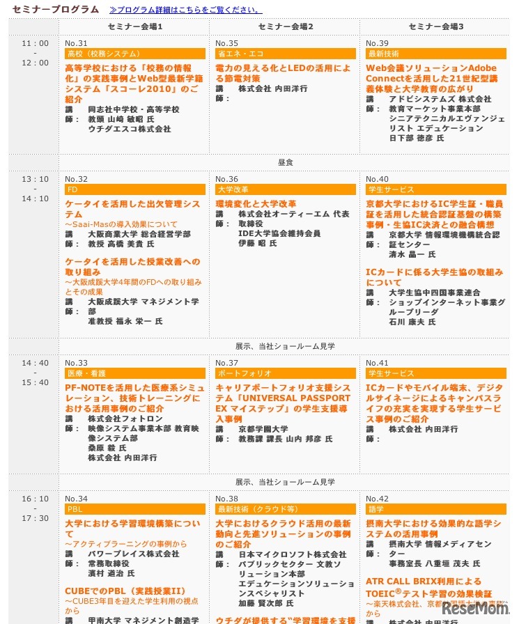 内田洋行は、「大学・高校実践ソリューションセミナー2011」を11月に東京と大阪にて開催する。