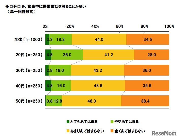 自分自身、食事中に携帯電話を触ることが多い(単一回答形式)