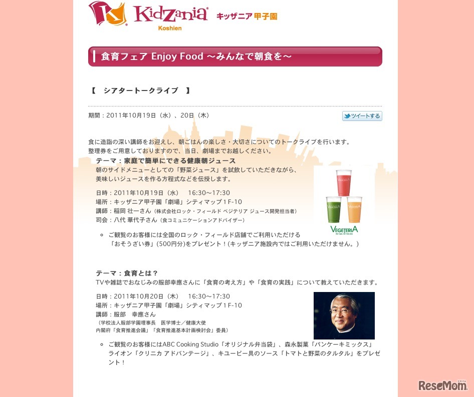 こどもが主役の街「キッザニア甲子園(KidZania Koshien)」は、10月19日~25日まで、食育フェア「Enjoy Food~みんなで朝食を」を開催する。
