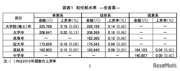 日本経済団体連合会(経団連)は10月14日、2011年3月卒業生の「新規学卒者決定初任給調査結果」の概要について発表した。