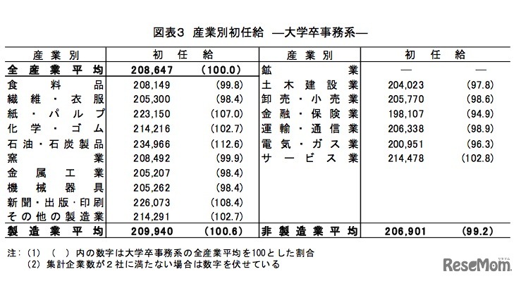日本経済団体連合会(経団連)は10月14日、2011年3月卒業生の「新規学卒者決定初任給調査結果」の概要について発表した。