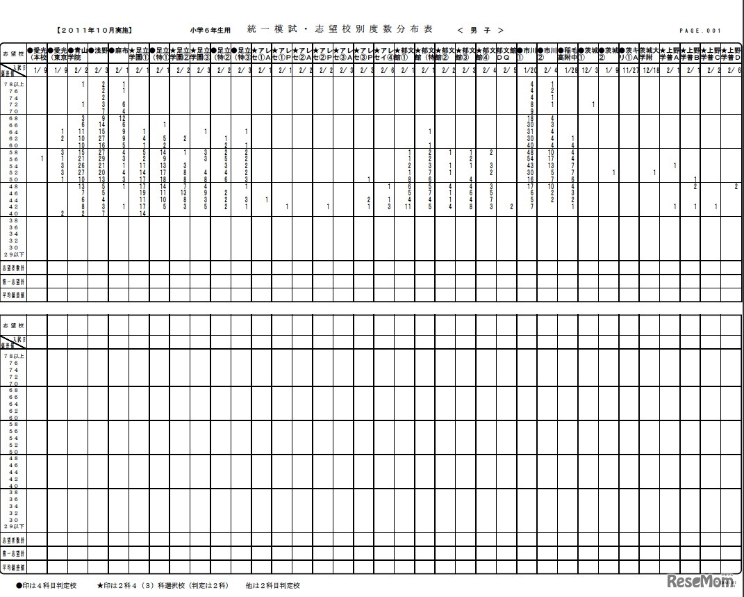 首都圏模試センターは10月15日、10月10日に実施された小6統一合判(第4回)の志望校別度数分布表を公開した。