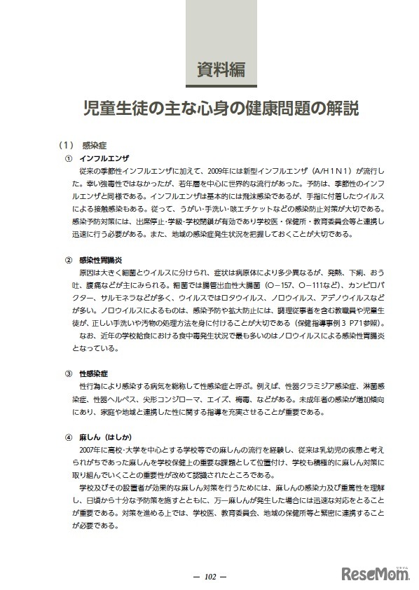 文部科学省は、「教職員のための子どもの健康相談及び保健指導の手引」についてホームページで公開している。
