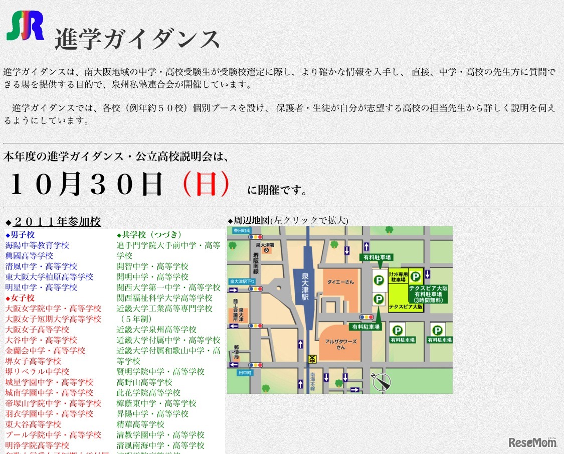 泉州私塾連合会は、「進学ガイダンス・公立高校説明会」を10月30日にテクスピア大阪にて開催する。