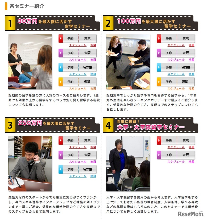 留学ジャーナルでは、「将来の自分に投資する 費用別留学プログラム説明会」を、11月12日と13日に、東京・大阪・名古屋・福岡の4会場で実施する。