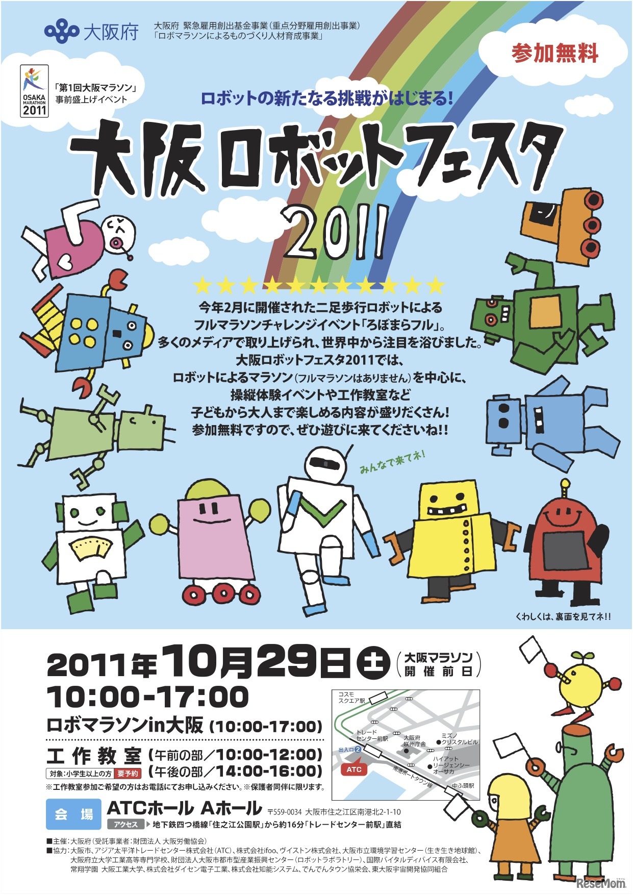 大阪府では、大阪マラソンの公式応援イベント「大阪ロボットフェスタ2011」を10月29日に、大阪市住之江区のATCホールで開催する。