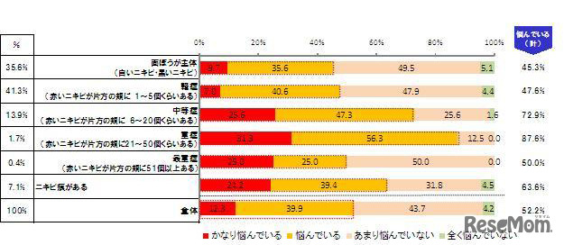 ニキビについてどのくらい悩んでいますか/あなたの今のニキビの状態に近いものを1つ選んでください